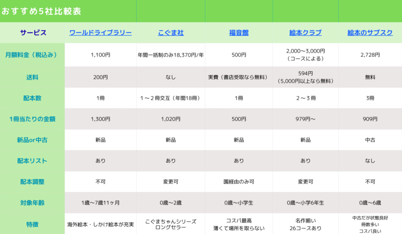 季節ごと年齢に合わせた絵本が届くし、親が手に取らないようなジャンルも届く。(30代 男性 noteより)