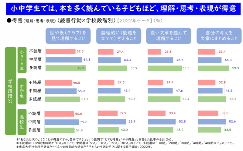 読書好きは文章を読むことに慣れ、長文にも抵抗がなくなるからです。