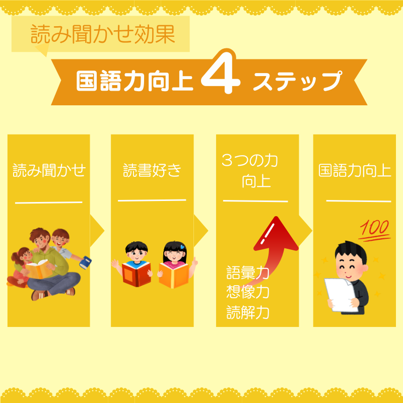 読み聞かせには将来の子どもの国語力に直結した効果があります。