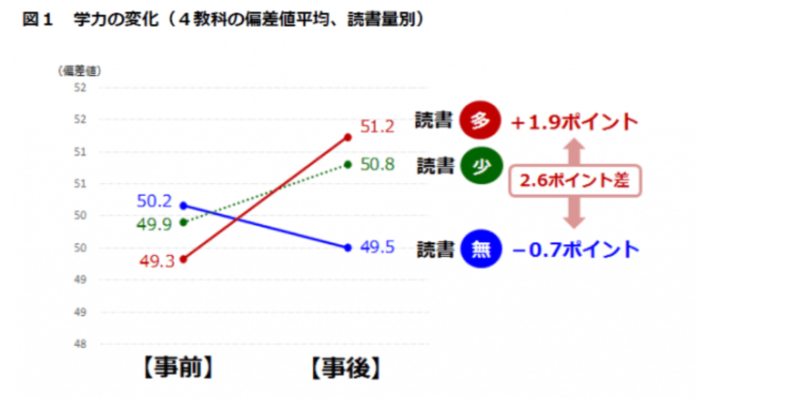 早い時期から読書経験のある子どもほど読書量が増え、読解力の差が広がりやすい傾向があります。