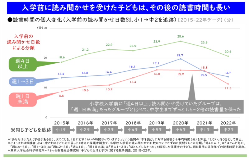 本好きになった子どもたちの読書時間が長くなるのは納得の結果ですね。