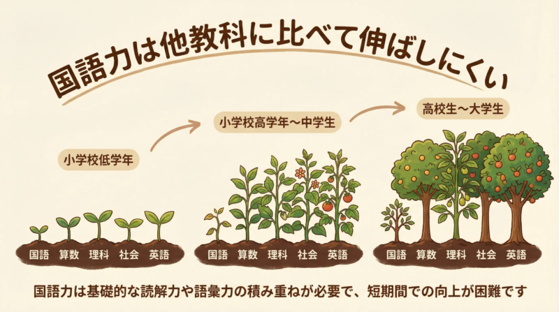 これこそが国語が後からでは伸びにくいと言われる理由です。